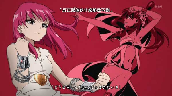 个人还是比较关心剧情的,从煌帝国的背景展开再到阿里巴巴发动政变,个人对这个番的看法有了较大的变化。觉得世界观开始宏大起来,剧情也出现了耐人寻味的地方。其中还经常穿插写卖萌福利什么的,由于人设方面比较讨好,第三方同人也渐渐兴起,这确实是一个好事。