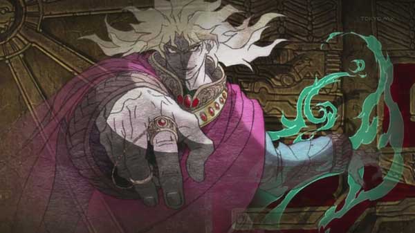 最大的特色之一是拟声词的具现化,从DIO第一次进JOJO家跳下马车的那刻起,真正的故事真正的开始了。而作为反面角色的DIO又却是有那样的超高人气,真是让人“又爱又恨”。DIO作为伴随着第一代JOJO的BOSS,和初代JOJO的关系也比较微妙,甚至最后两人一起长眠在大海深处(严肃状)。