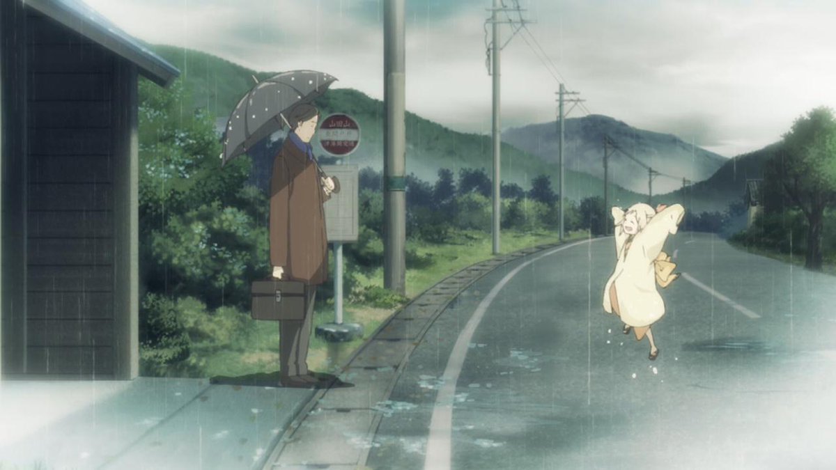 就如这次的图我选择《EP2 恶作剧之雨》,到目前为止虽然不是最出彩的一话,但是给我的感触确实最深的。尤其是那句“请多保重/お元気で”,这里我觉得祝愿身体健康的意味更大一些。就像对话那“哦呀,下雨了。”,“是啊,但是肯定马上就会天晴的。”,虽然他可能已经完全不记得多年前那个在雨中嬉戏的小女孩,可能多年以来小女孩的心意也完全没有传达过来。但是一句“请多保重”就足够了,小女孩也终于可以安心了。就像《EP6 悄无声息的山谷》那样蠢蠢的等待夏目玲子的到来,但是等来的却是现在的夏目,在了解这一切后终于可以安心的离开这由热闹变得寂静的山谷。
