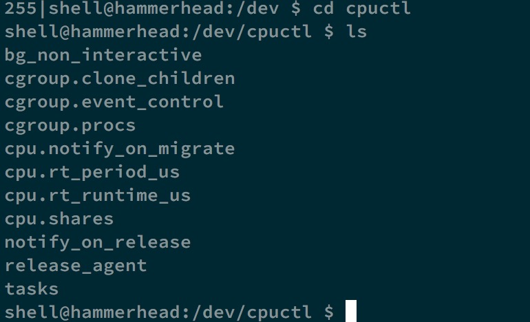 如上图Android cgroup只有两个组分别为apps和bg_non_interactive。cpuctl目录下为apps(前台)组信息,而bg_non_interactive(后台)目录下结构和cpuctl一致,可以使用同样的方式读取。最关键的是在android 6及以下这些目录是完全由读取权限的。