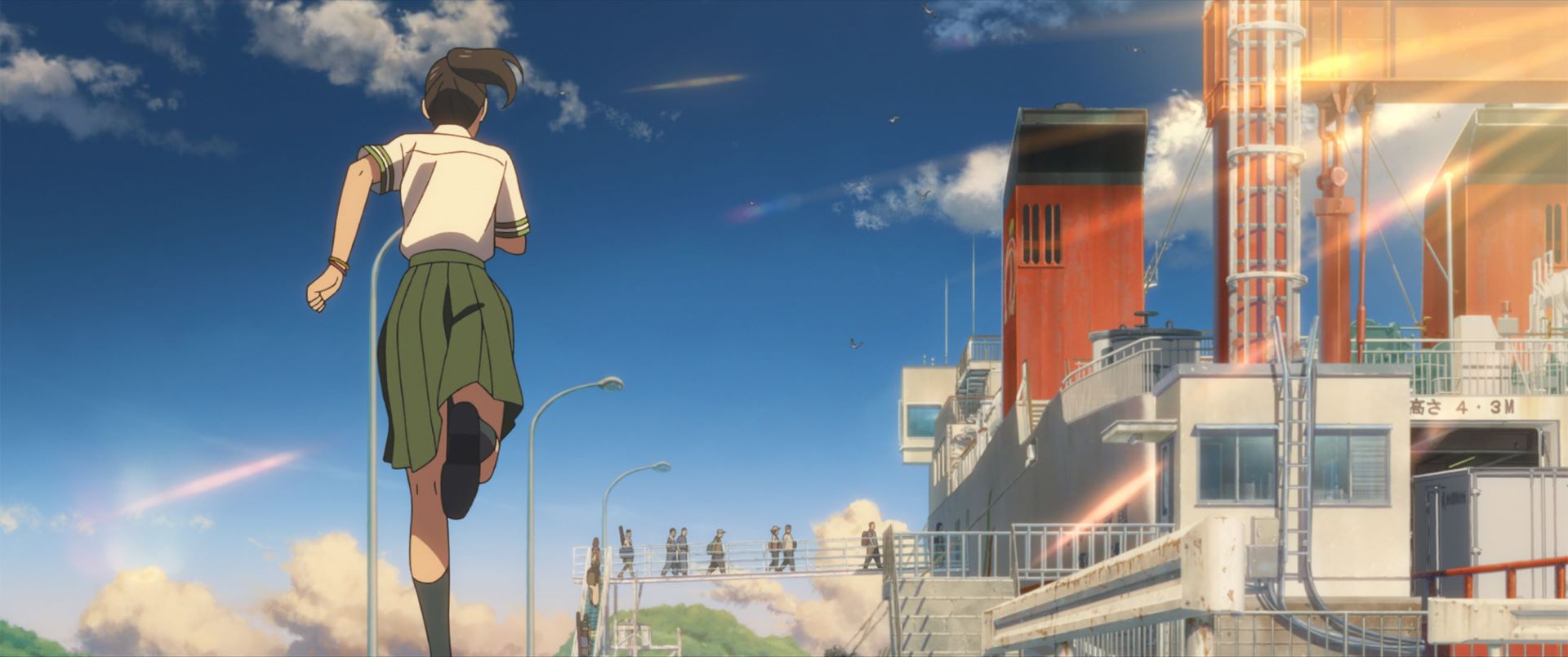 岩户铃芽(女主)的设定是女子高中生(JK),对于那种 JK 感的表达我认为非常好,甚至觉得会“拿捏”到不少人。环境上的美术,以及人设上的静态与动态的美术,我想没有必要说什么了(务必去看一下)。另外这部作品同样有不少关于“足”的情节,比如一开始的在水里遇到“门”,以及后面各种跑等等。这方面我想一些“老二次元”应该能明白吧(意味深长),我只能说太棒了。