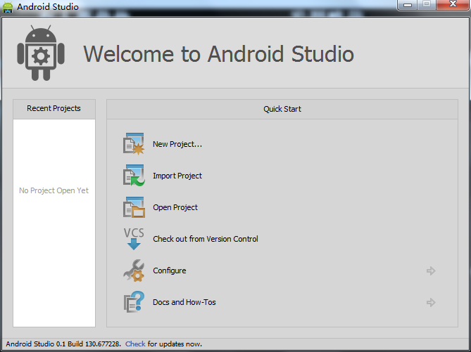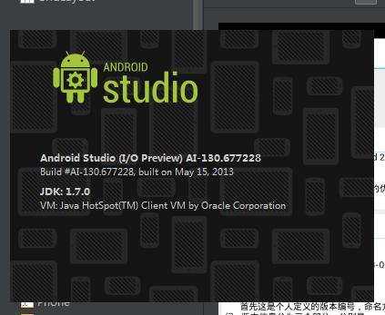 安装上之后版本是这样的,名字是I/O Preview,估计意思是I/O的定制版,所以这个将来如何发展还不确定。不过既然都做到这一步了,intellij IDEA不像Eclipse那样庞大,定制起来也比较方便吧,而且在Google I/O上发布估计以后可能有替代Eclipse的节奏。就看将来这个工具的使用效果是是否可以打动开发者了。