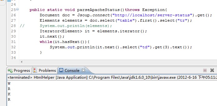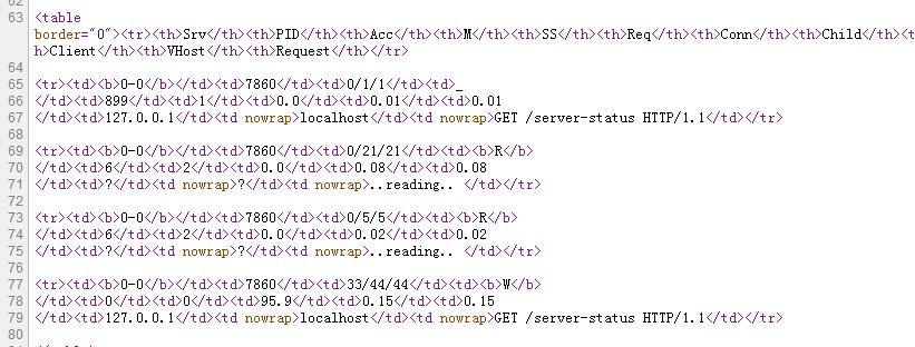 jsoup是一个开源的java库,主页地址http://jsoup.org。这里简单的介绍下用法,现在有这样一个应用场景,在做apache监控的时候需要获得apache的server-status页面的内容,进而解析出html的内容。虽然apache的status提供了方便机器读取的auto页面,但是其毕竟很有限,如果需要获得连接的详细信息的话就只有抓取html页面进而解析出来。现在假定apache开启mod_status模块,并启用ExtendedStatus。
