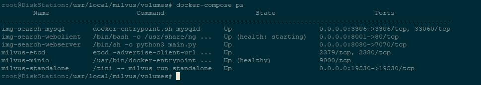 MYSQL_DB = os.getenv("MYSQL_DB", "milvus")数据库,数据表milvus_img_search会在运行时检测并创建 - 连接容器中的