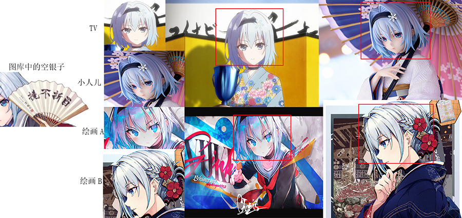 如上图左侧为图库中已有的原图,然后找了图库中不存在的,TV版本,小人儿版,绘画风格A,绘画风格B四张图。