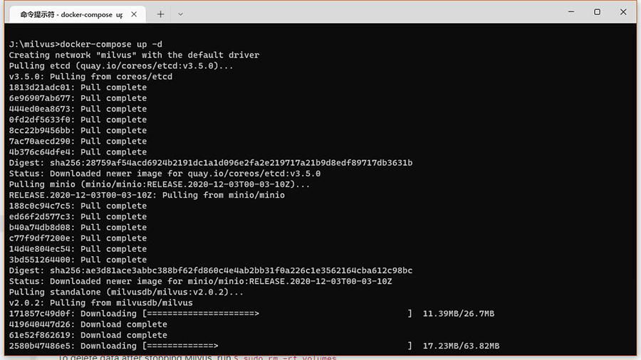 milvus-standalone-docker-compose.yml并保存为docker-compose.yml文件 - 使用