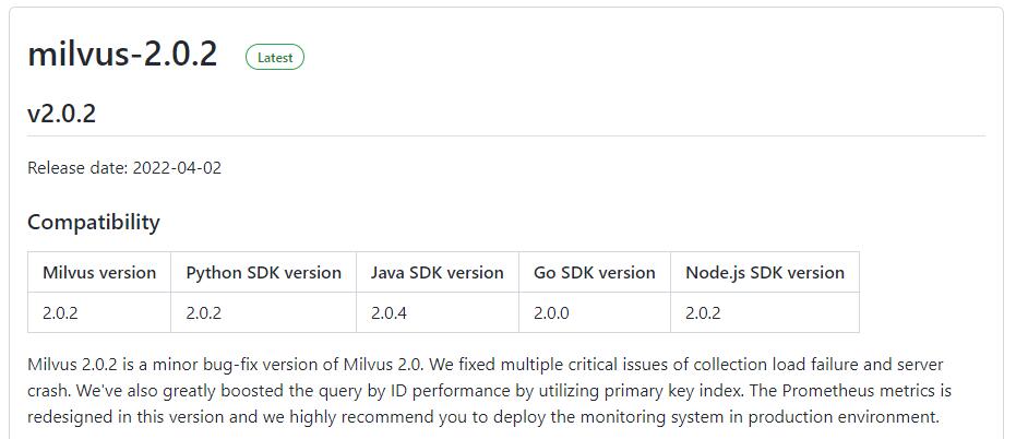 当前最新的稳定版本为 v2.0.2 以及对应的各种语言的 SDK版本。