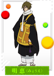 现在的明惠继承一代明惠的法号,和他们一起生活在镜都,成为镜都的三个最高管理者。本来和他的小摩托车就很违和,在设定上还是一个风流的和尚。其发色甚至是张相都和一代明惠非常相似。