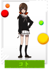 筝(コト) CV:钉宫理惠。是热闹的主要起因,她把每天都当做是祭奠来对待 ,并和维护秩序的翔子博士一方进行非常漫画式的夸张打斗。其介于人和 妖(幻想)之间的产物,所以其拥有妖怪一方的特点:红色的瞳孔。