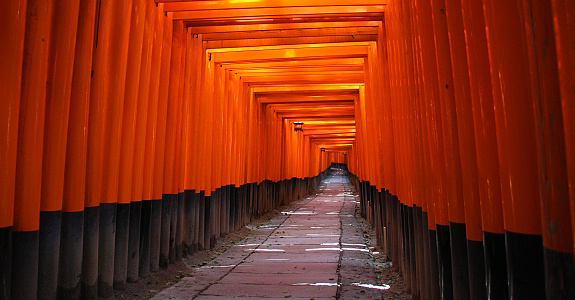如上图:伏见稻荷大社的著名景观“千本鸟居”。千本鸟居相信所有看过图片的朋友也一定印象深刻 。