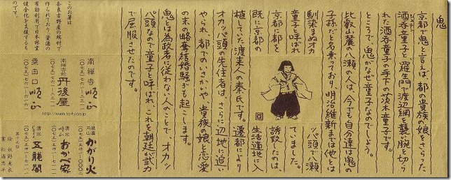 八瀬和童子的说法是,“在京都,如果說到鬼,就是指掠奪京都貴族之女的酒吞童子(しゅてんどうじ),以及在羅生門襲擊渡邊綱時手腕遭到切下的酒吞童子手下的茨木童子(いばらきどうじ)。然而,鬼為什麼會是童子呢? 在比叡山麓的八瀨的人,到現在還自稱是鬼的子孫,到明治維新為止,都沒有被同化,由於留著河童頭(オカッパ頭:御河童頭,小孩子髮型),因此被稱為「八瀨童子」。在京都之所以會被誘到都市,是由於已經適應京都生活的過來人之秦氏的關係。遷居都市留著河童頭的先期居民,後來被進一步攆開到邊地,因為在京城的爭議是:與貴族姑娘戀愛的結局就會發生略奪結婚的騷亂。 鬼是不會服從為政者的,由於河童頭而將其稱作童子,這樣(似乎)可以看成屈服於朝廷的武力之下。文字来源。总是想起伊吹萃香和茨木华扇什么的… …