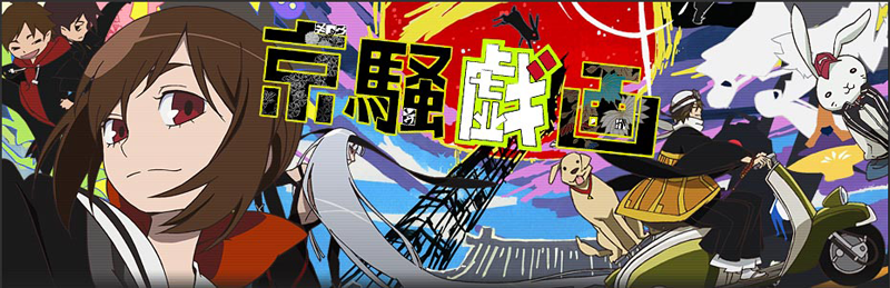 《京骚戏画》一共有分为六个章节进行制作,首先是一个TV版长度的OVA,然后是5话8分至10分不等的短篇作品,并且五部短片基本是每月一部,由于长时间的间隔所以看完新的一话总会不明所以, 直到最后一话将整个故事进行了讲解,这时大家才觉得原来是这样… … 但是很多细节还是让人难以理解。