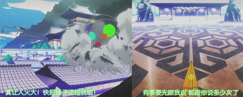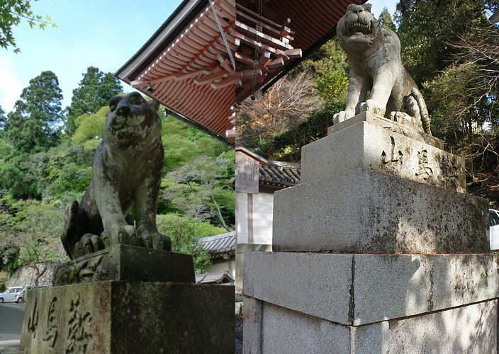 首先筝手里的大锤子,翔子博士说是毘沙丸的东西。这里说的毘沙丸应该是按照鞍马寺所供奉的本尊,而鞍马寺的本尊是毗沙门天,貌似也有地方叫毘沙门天。似乎监督说过这个锤子是之前自己小时候想玩的玩具,不过有些朋友说,按照鞍马的形象来说,让人想到是是“一寸法师”(源自御伽草子),所以顺理成章的将这个锤子也理解为“打出の小槌”,也就是可以使一寸法师变大的“鬼遗落的槌”。既然是以鞍马寺为背景那么。右图上的看门狮子应该是特有的狛(ㄆㄛˋ)犬和阿吽虎。