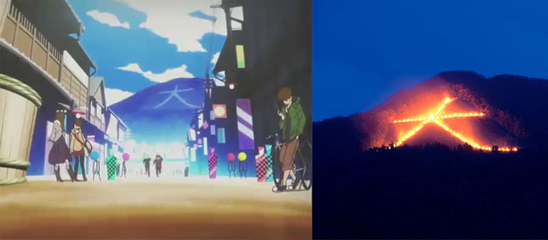 OVA中开始就是热闹的打斗,然后是镜都三柱神的起誓,维护镜都。接下来的祭奠,从《卖烛谣》可以才出来是祗园祭,那么和祗园祭相关的就是八坂神社。