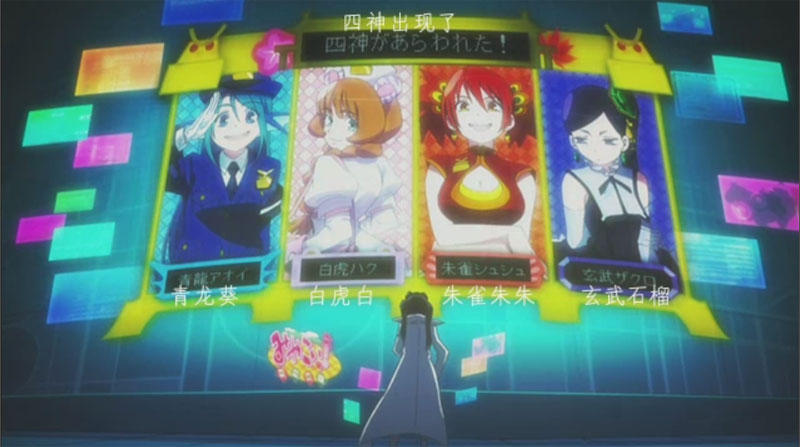 随后みやこい这个系统招出了所谓的四神,类似于具体的管理执行者,分别是青龙、白虎、朱雀、玄武四个妹子。