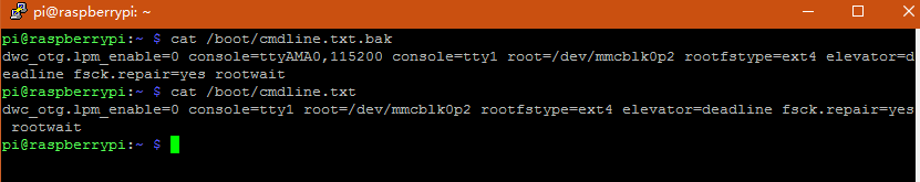 第一行为原始版备份文件,第二行为修改之后的文件,如果其中代码是”console=serial1,115200 “,则可以不需要修改。