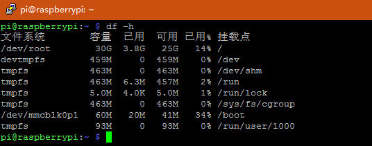 之后将会使用整张SD卡的空间,此时使用df命令看到目前的磁盘使用情况,另外此配置界面可以进行非常多的有用操作。