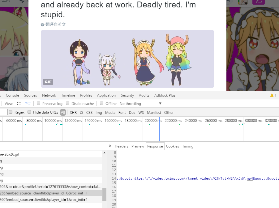 如上图获得JSON中的"video_url"值就是mp4的源地址,那么真正视频又是如何呢?于是我想起了刚刚直播抽卡的智障法师,在抽到卡之后已经疯狂的高桥李依…