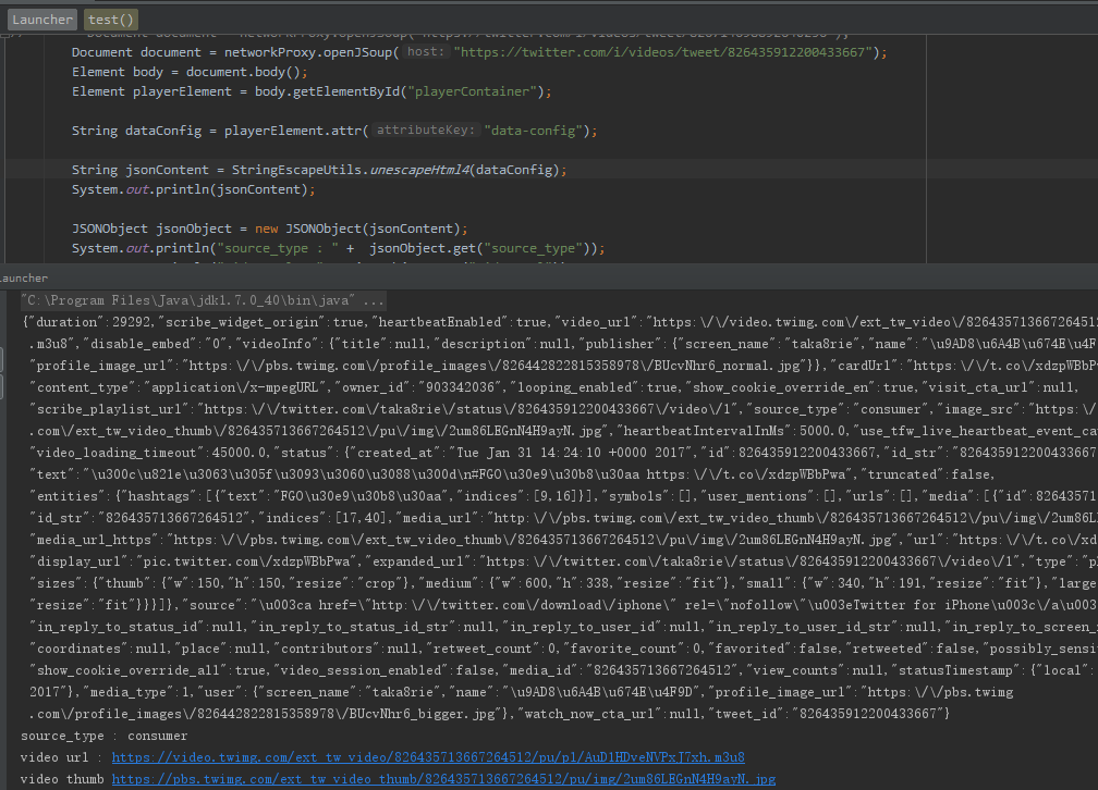 直接将地址套如代码,顺便打印一下看看有什么差别,结果竟然是兼容的。比较新奇的是加了音轨的视频是m3u8流媒体格式,据我所知这是一种流媒体格式,似乎是可以做码率适配也就是根据客户端带宽选择码率保证流畅度。但是根据我的使用情况来看,几乎所有的视频画质都低的不行,就像有马赛克一样,而且分辨率也是非常的低。