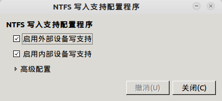 sudo ntfs-config 勾选【启用内部设备写支持】;